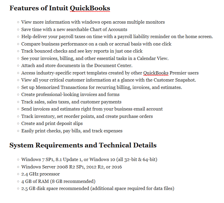 • FEATURES OF INTUIT QUICKBOOKS